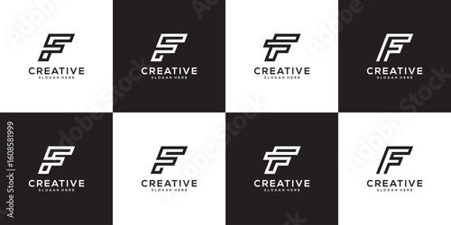 Fototapeta premium Set of initial letter F logo design template. icons for business of luxury, elegant, simple