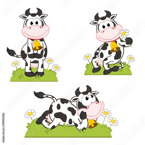 Obraz premium set of isolated cow in the meadow - vector illustration, eps