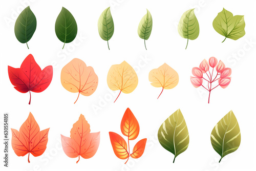 © Golden House Images, Obraz premium Set of isolated multi color of leaves on white background. Generative ai.