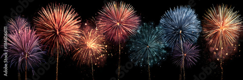 Fototapeta premium set of isolated vector fireworks on a transparent background.