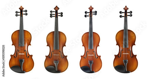 Fototapeta premium Set of Isolated Violins on Transparent Background