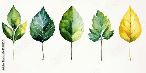 Fototapeta premium Set of Isolated Watercolor Leaves Digital Concept, Generative AI