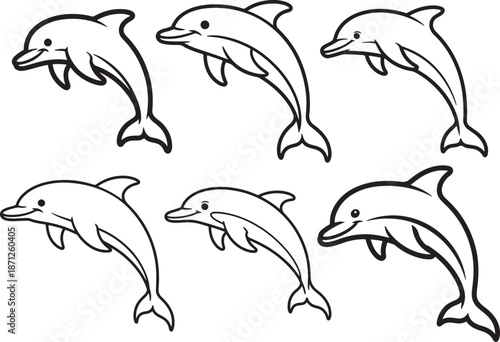 Obraz premium Set of jumping dolphin Line Art, Coloring Book Page Vector Illustration
