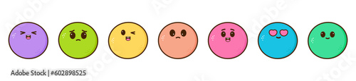 Fototapeta premium Set of kawaii ice cream with cute face on a white background. Vector...