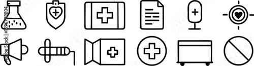 © MD JEGON, Obraz premium Set of kitchen utensils knives and tools icons in red vector style for web and design use