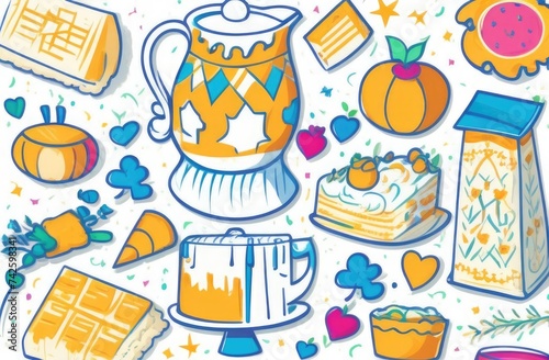© schukoba, Fototapeta premium Set of Kosher Dairy Products to Celebrate the Jewish Holiday of Shavuot, Harvest Festival