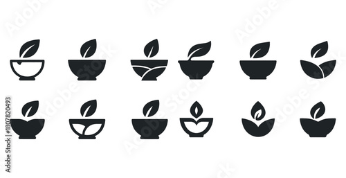 © Настя Шевчук, Fototapeta premium Set of leaf and bowl icons representing eco-friendly concepts