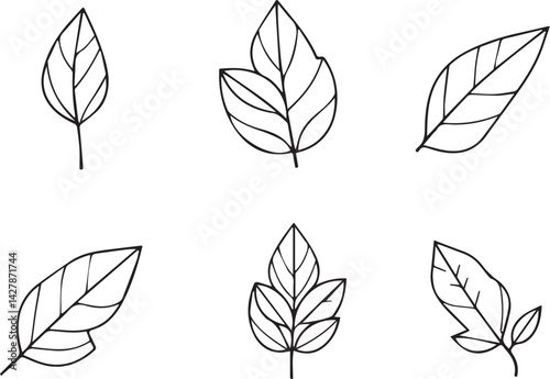 Obraz premium Set of leaves, flat silhouette. Hand drawn vector illustration