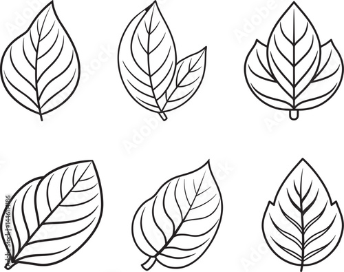 © 69creativedesigner, Obraz premium set of leaves line art, black outline, vector and illustration, coloring book page line art drawing
