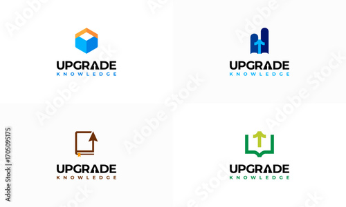 Obraz premium Set of Library book logo Designs concept vector, Upgrade Knowledge logo template, Education logo symbol