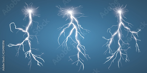 Obraz premium Set of lightnings. Thunder-storm and lightnings. Magic and bright lighting...