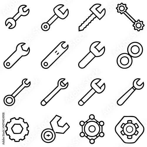 Naklejka premium Set of line art icons depicting various mechanical tools