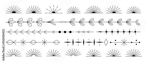 © Priya, Fototapeta premium Set of line border illustrations, dividers, ornament design elements, decoration graphic