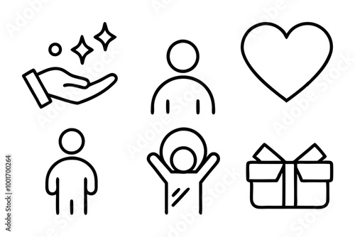Obraz premium Set of line icons related to charity, donation, social responsibility,...