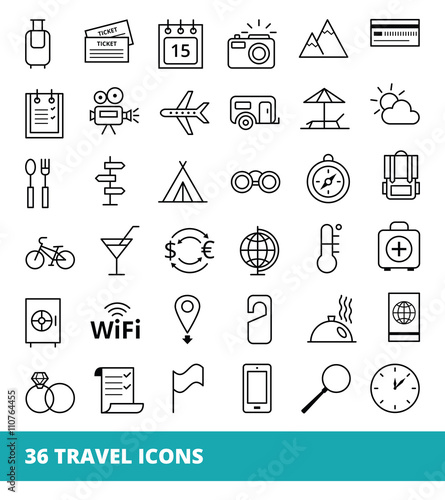 © Julia, Naklejka premium Set of linear vector web icons on a theme Travel and Tourism