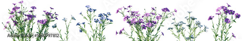 © Viktoria, Fototapeta premium Set of Linum usitatissimum (Linseed flax) frontal isolated png on a transparent background perfectly cutout high resolution