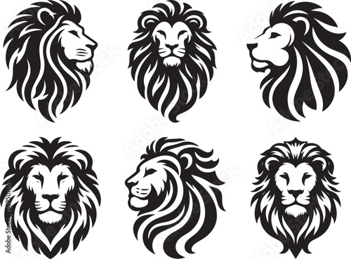 © graphicmount, Obraz premium set of lion head logo vector art silhouette" with white background. Generative AI
