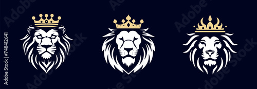 © Nj_Art, Fototapeta premium Set of lion head with crown for elegant and luxury brand identity logo, symbol, icon. t-shirt design, Vector illustration. generative ai