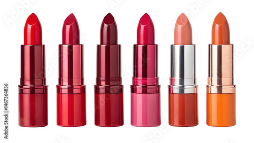 Obraz premium Set of Lipstick Rows in Fashion Colors High-Gloss Tubes Isolated PNG