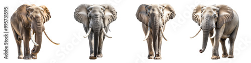 Obraz premium Set of majestic elephants walking isolated on white background