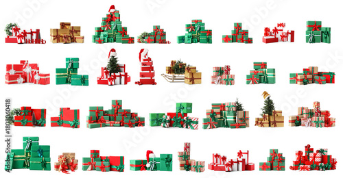 © Pixel-Shot, Fototapeta premium Set of many Christmas gifts on white background
