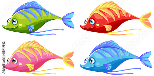 Naklejka premium Set of many funny fishes cartoon character isolated on white background