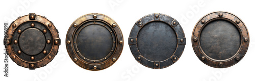 Fototapeta premium Set of metal rounds frames with rivets in steampunk style on transparent background PNG