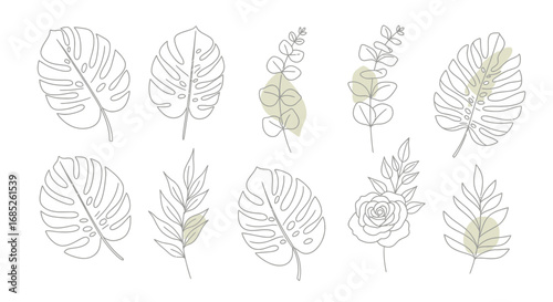 Obraz premium Set of minimalist botanical line art illustrations with monstera, eucalyptus,...