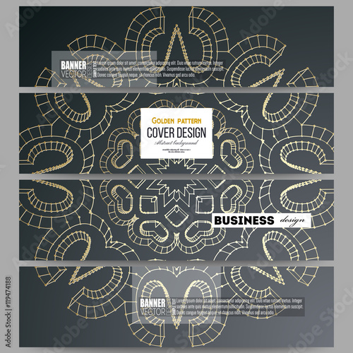 Fototapeta premium Set of modern banners. Polygonal backdrop with golden connecting dots and...
