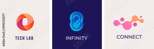 © Marina Zlochin, Fototapeta premium Set of modern colorful, abstract logos, symbols. Technology, bio tech logos, icons and concept identity idea. Vector design