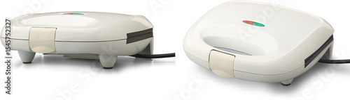 © Shamil, Obraz premium set of modern compact multi functional sandwich maker or toaster isolated white background, versatile kitchen appliance in different angles