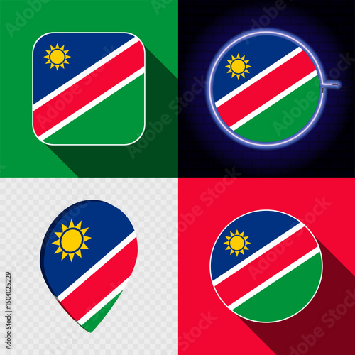 © Ruslan, Naklejka premium Set of modern icons with the national flag of Namibia.