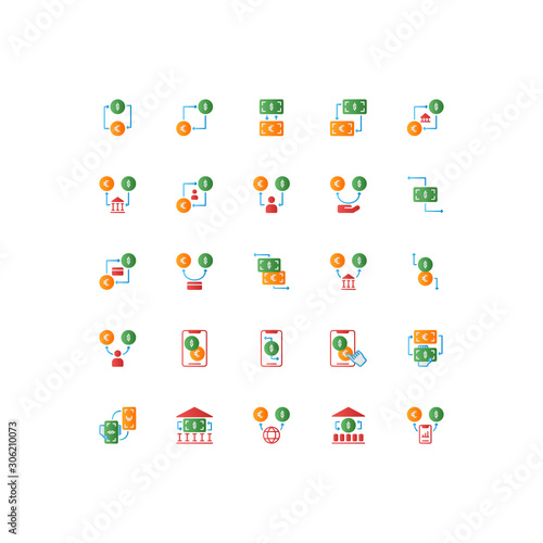 Fototapeta premium Set of money exchange, business, flat style icon - vector