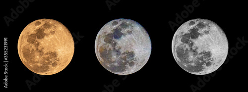 © media-ja, Obraz premium Set of Moon isolated on black background. Full pink and white moon on sky at night.