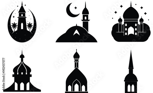 Obraz premium Set Of Mosque Minar Silhouette Vector illustration – Islamic Tower and Religious Architecture