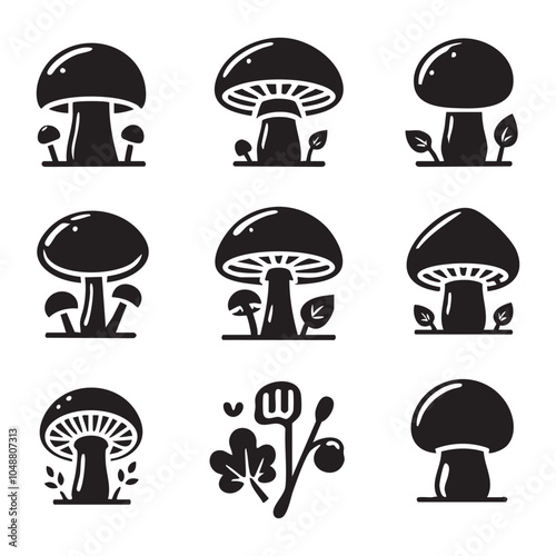 © Shamim Akhtar, Fototapeta premium Set of mushroom silhouette on white background