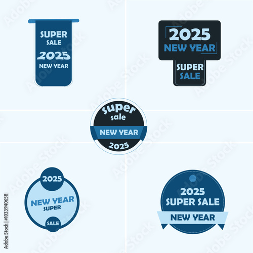 © Ilyas Designs, Obraz premium Set of New Year sale tags, Spuer sale tags, 2025 new year sale tag, sale labels, sale tag, Super sale template, super sale lables