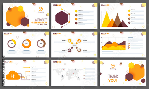© Abdul Qaiyoom, Naklejka premium Set of nine Business Presentation Templates layout.