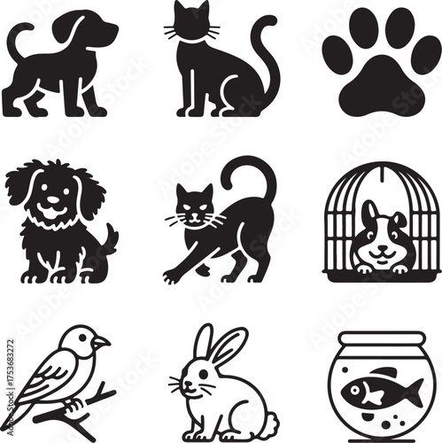 Obraz premium Set of nine detailed pet adoption icons with transparent background animal icon dog icon
