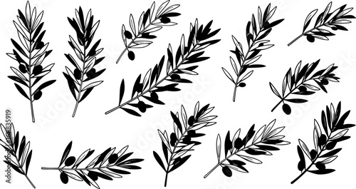 © Kabaka, Naklejka premium Set of olive branch silhouette vector illustration