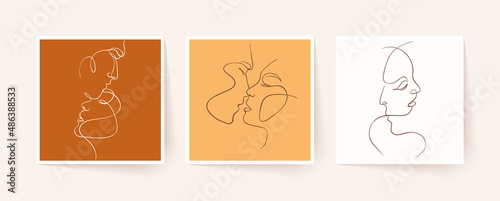 Fototapeta premium Set of one line faces, couple man and woman. Valentine's day minimalistic...