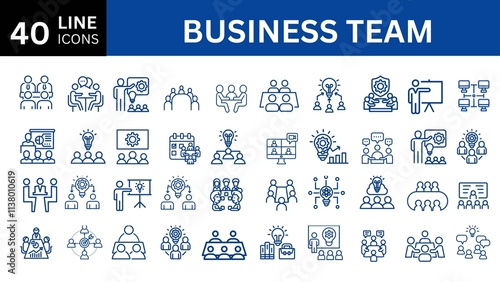 Naklejka premium Set of 40 outline icons related to business team. Linear icon collection. Editable stroke. Vector illustration