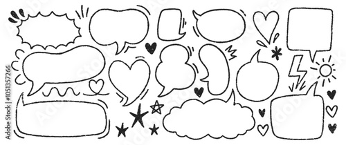 Obraz premium Set of outline speech bubble for student diary. Pastel, chalk or crayon...