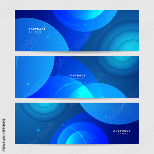 © Salman, Fototapeta premium Set of overlap memphis geometric blue abstract banner design background