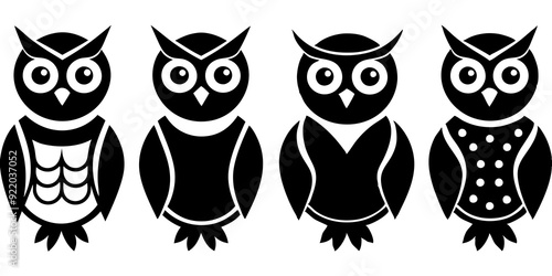 © bizboxdesigner, Fototapeta premium Set of owl icons silhouette vector art style illustration