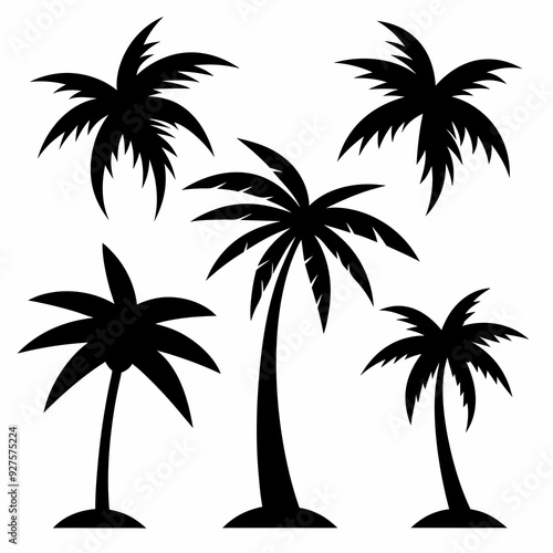 © Creative vector, Fototapeta premium Set of palm tree silhouette white background