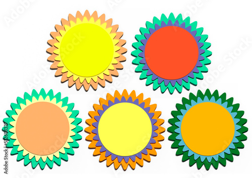 © Алексей Романец, Fototapeta premium Set of paper flowers of different colors on a white background.