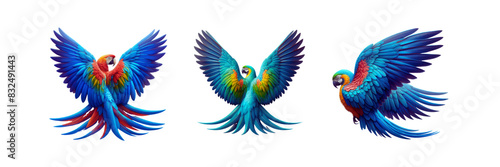 © Mithun, Fototapeta premium Set of Parrot, isolated over on transparent white background