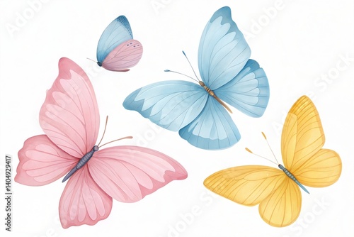 Obraz premium Set of pastel-colored butterflies, isolated on a white background. (Butterfly)
