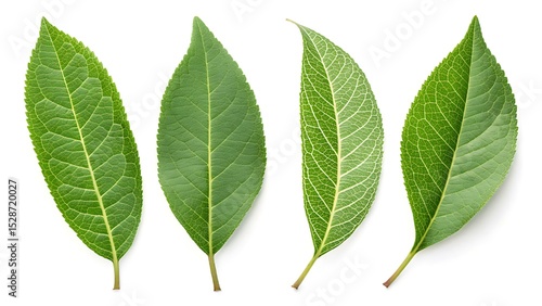 © MidStock, Fototapeta premium Set Of Peach Leaves Arranged In Different Positions On White Background, Fruit Leaves, Green Leaf, Isolated Leaf